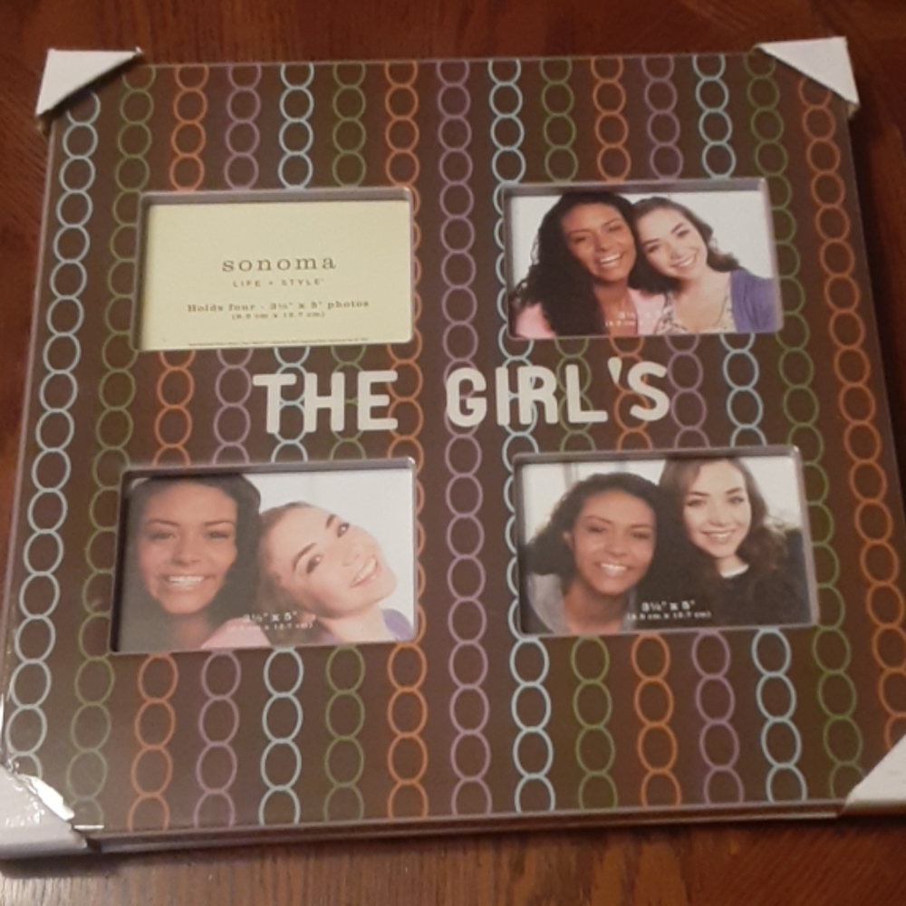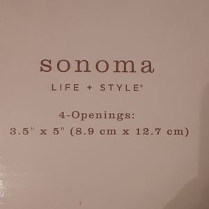 Sonoma Life & Style picture frame. It's some sort of hard plastic/acrylic with a shiny finish. Adorable. Brand new
