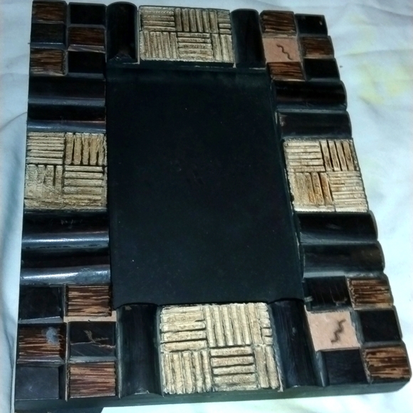 6.5 inches wide by 8.5 inches tall. very nice piece. good material. solid