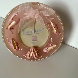 Ballerina/dance picture frames. Large Measures 9.5” x 7 1/4” with oval picture opening; small is 4 1/2” round. Adorable frames from the Russ Spring Recital line