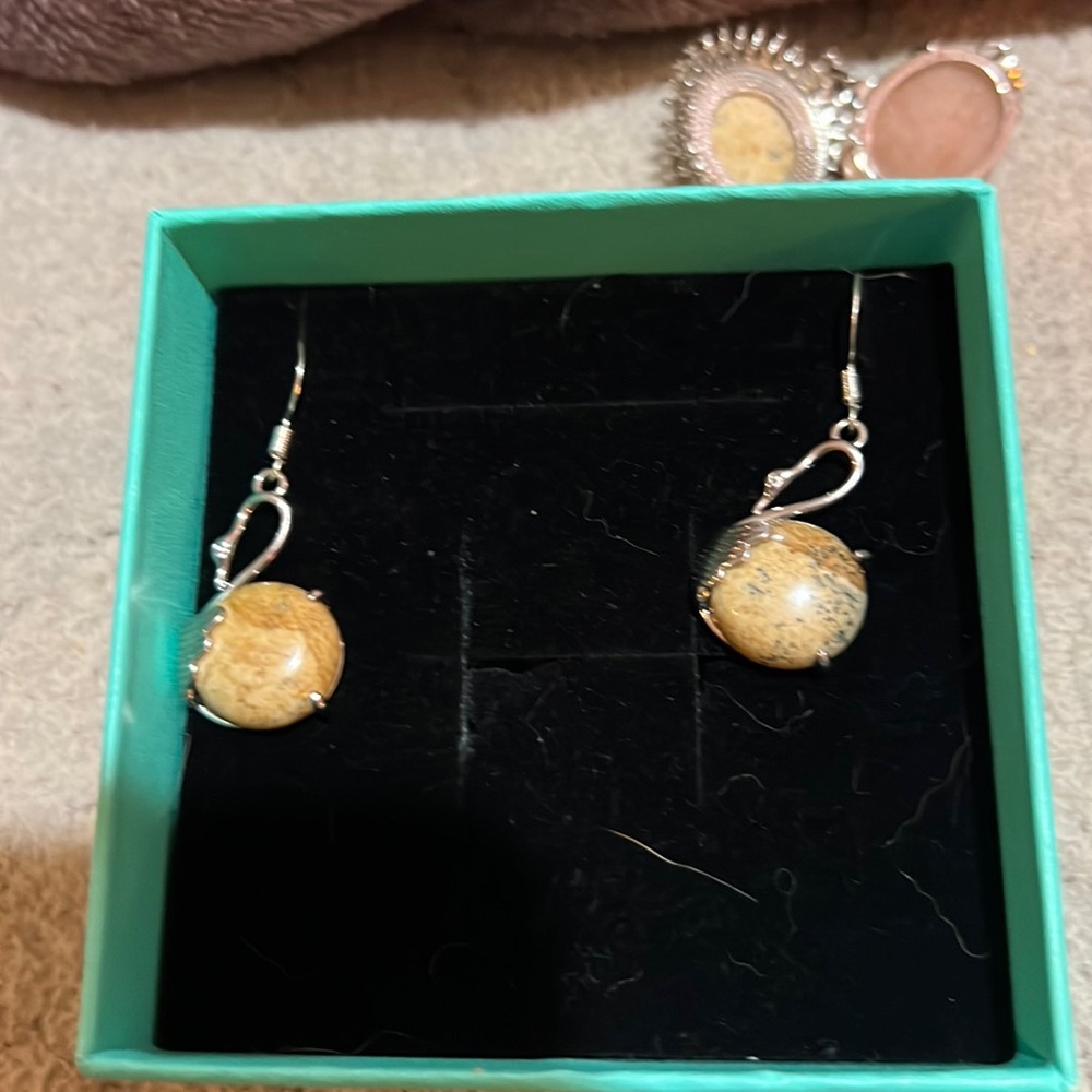 Picture stone set includes swan earring’s, adjustable ring, round pendant,star pendant as well as the angel tower. Chain included. Can sell separately.
