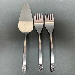 Pie Server Forks Flatware Stainless Steel Rose Lot of 3