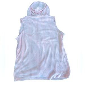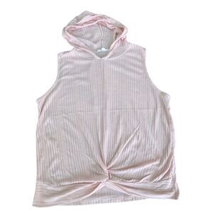 Super cute and sporty! This blush pink sleeveless hoodie has a soft ribbed texture and stylish front twist. Lightweight and comfy—perfect for layering over tanks or pairing with leggings.