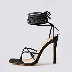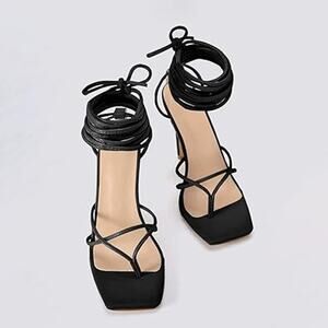 PiePieBuy Womens Size 9 Black Lace Up 4.5" Heel Strappy Ankle Wrap Sandal Shoes
