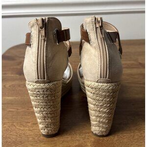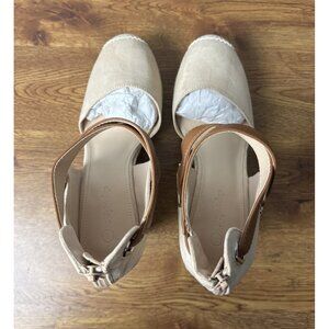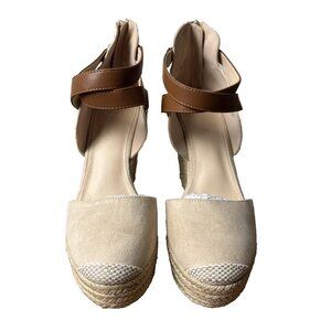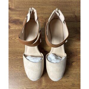 PiePieBuy Women’s Wedge Espadrille Ankle Strap Closed Cap Toe Beige Platform 8