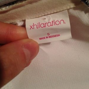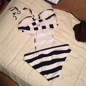 Nwot, never worn: just tried on. White and blue strips with sparkles on the blue. Size Small Xhilaration one piece. Ties at neck and back.