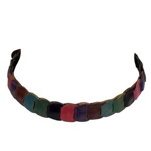 Vtg 90s Multi-color Pieced Leather Buckle Waist Belt Ladies S/M Unbranded