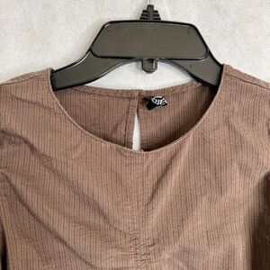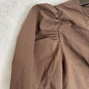 Pieces Brown Puff Shoulder Long Sleeve Scoop Neck Ruched Top Sz SM