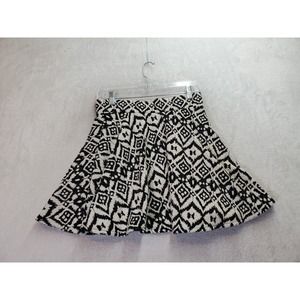 Pieces Mini Skirt Women Small Cream Black Geo Print Polyester Casual Medium Wash
