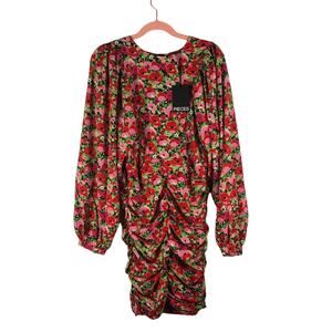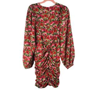 Pieces Pcola Mini Dress Ruched Long Balloon Sleeve Floral Print Sz. S NEW