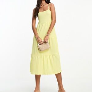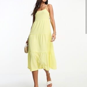 Pieces Tiered Midi Dress Bright Yellow Size Small