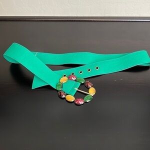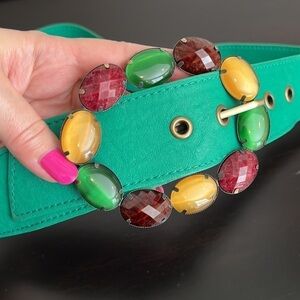 Pieces Verinda belt, multi color bejeweled buckle, green retro belt,43” length