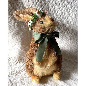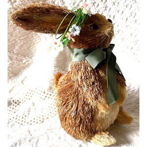 Pier 1 Adorable Straw Bunny With Green Ribbon Bow & Floral Crown Spring