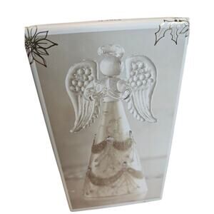 Pier 1 Angel Glass Angel Glittery dress Clear & Metal with Box, Satin lining