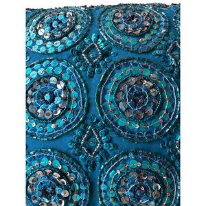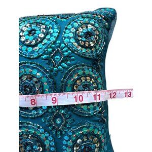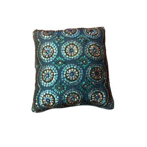 Pier 1 Beaded Sequin Decorative Throw Pillow Teal Blue Boho Glam Accent Cushion