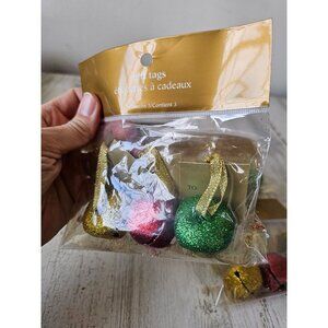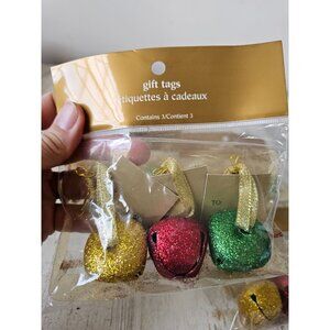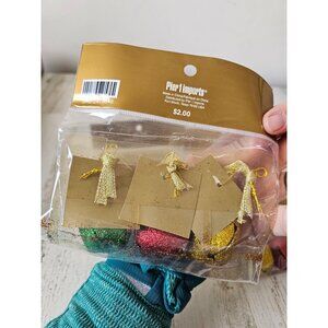 Pier 1 Bell gift tag set glitter unique present gold red green