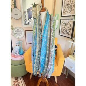 Pier 1 Blue Layering Repurposed Sari Scarf NWT Boho World Bohemian Artsy Hippie