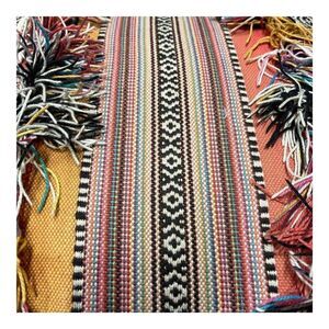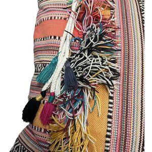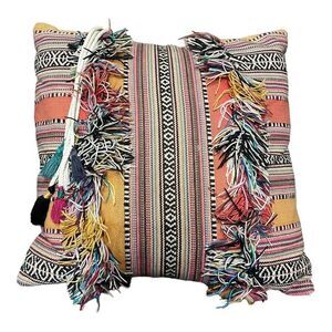 Pier 1 Boho Southwestern Aztec Colorful Print Fringe Tassels Throw Pillow 15"