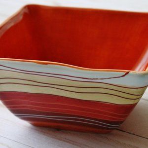 Pier 1 Bowl Earthenware Canyon Stripe Soup Cereal Hand Painted Square Orange