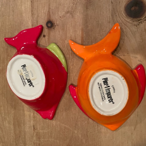 Pier 1 Ceramic lot of 2 fish shaped colorful dipping dishes tea rest sushi bowls