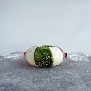 Pier 1 Christmas Peppermint Candy Votive Tea Light Candle Holder 6.5”
