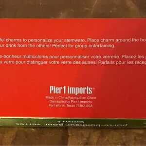 Pier 1 Glass Penguin Wine Charms 6) penguins NIB