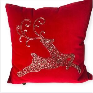 Pier 1 Christmas decor Red Velvet Beaded Reindeer throw pillow