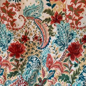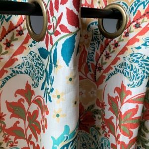 Beautiful floral single panel curtain that will brighten up your entire room. Currently available online from Pier 1. Lined polyester, machine washable in excellent condition from pet-friendly home.