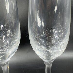 Pier 1 Clear Glass Crackle Angled Rim Goblet Drinking Glasses Cups Flutes Set 2