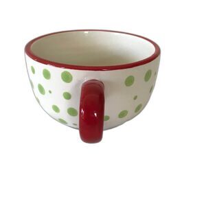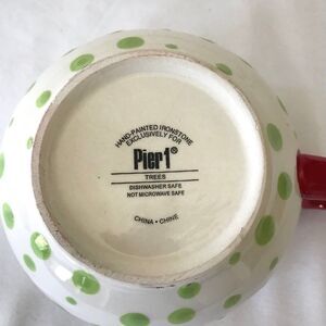 Pier 1 Coffee Mug Cup Trees Dots Xmas Hand painted Ironstone Red Green Rare