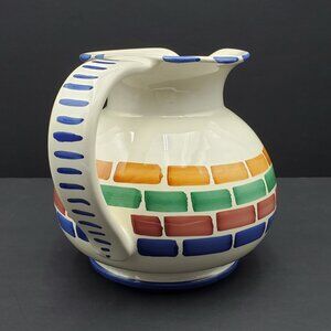 Pier 1 Colorful Blocks Pitcher Blue Red Green Orange Bricks Rectangles on Cream