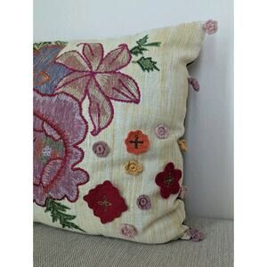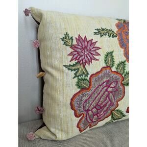 Pier 1 Decorative Pillow Embroidered Red Floral Flowers Gold Glitter Crochet