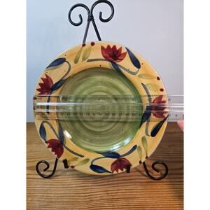 Pier 1 Elizabeth handpainted stoneware plate with vibrant floral pattern and green swirl center