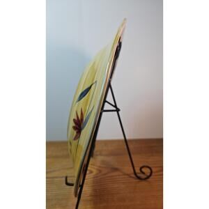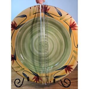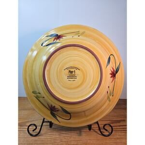 Pier 1 Elizabeth Stoneware Dinner Plate Handpainted Floral 12" Yellow Green Dishware