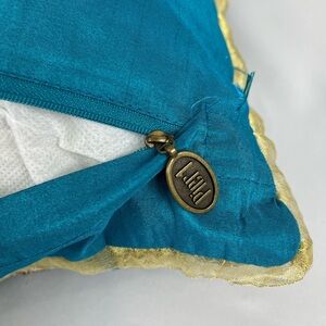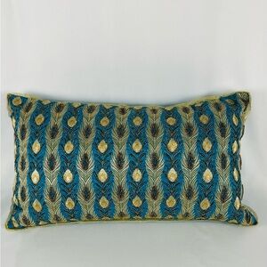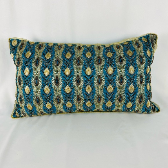 Pier 1 Embroidered Peacock Beaded Lumbar Accent Throw Pillow Teal Gold Bronze