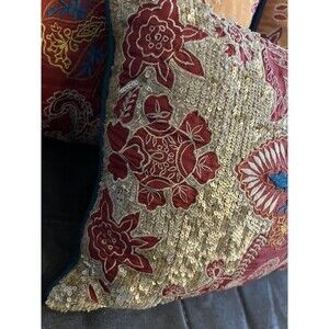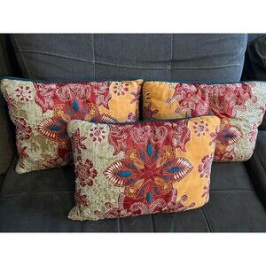 Pier 1 Embroidered Rectangular Throw Pillow Set of 3 Flowers Boho Kitsch Sequins