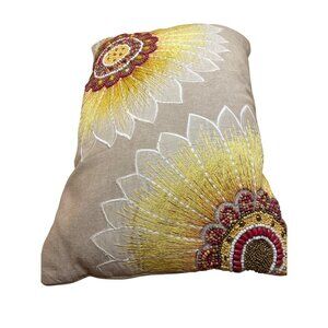 Pier 1 Embroidered Sunflower Throw Pillow Beige With Yellow & Red Beaded Accents