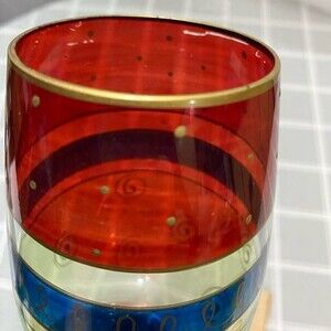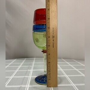Pier 1 Festive Handpainted Crystal Wine Glass Water Goblet Stemware Blown Glass