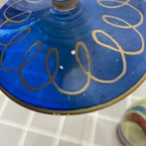 See photos: vintage pre-owned stemware, No chips or cracks, but there are a few spots where the paint is missing and the color on the foot has haze on them.