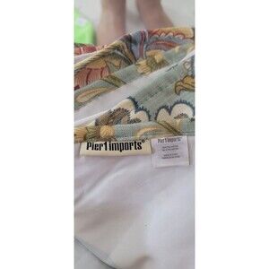 FLORAL BLUE MEADOW CURTAINS Two Panels 54"W x 96"L From Pier 1. Lined panels in traditional Jacobean floral print in multi-colored soft pastels. Rod pocket and back tab pocket combination for effortless hanging.