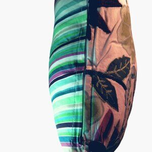 Pier 1 Floral Embroidered Decorative Pillow 15x15 Green Blue Striped Cushion