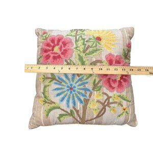 Pier 1 Floral Embroidered Floral Throw Pillow Square Beige Yellow Pink Blue 12"
