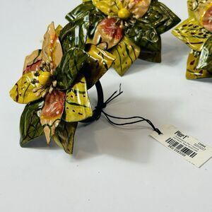 Pier 1 Flower Napkin Rings Lot of 4 Enamel Metal Sage Green Red Yellow NEW 3.75"