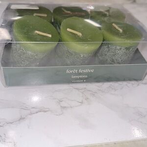 Pier 1 Foret Festive small Green Candles Set scent holiday forest