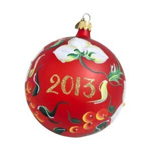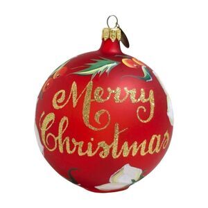 Pier 1 GLASS Red Merry Christmas 2012 Ornament Flowers