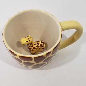 Pier 1 Giraffe Mug Hand Painted Surprise Baby Giraffe Inside, Set of 2 Cups