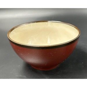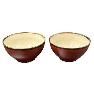 Pier 1 Hand Painted Stoneware Colored Rim Crimson Bowls 6 Inch Diameter Set of 2
