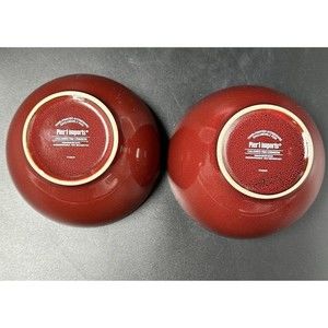 Elevate your table setting with this beautiful set of two hand-painted stoneware bowls from Pier 1. The bowls feature a crimson-colored rim that adds a pop of color to any meal. Perfect for all occasions, these bowls have a height of 3 inches and a diameter of 6 inches, making them the ideal size for serving soups, salads, or desserts.