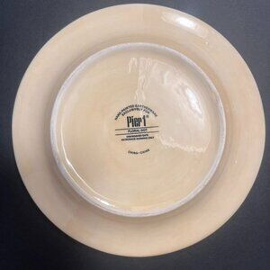 These Pier 1 earthenware salad plates feature a hand-painted floral dot design, adding an artistic touch to your tableware collection. The warm beige and red colors complement various dining settings. These plates are discontinued, making them a unique addition to your collection.