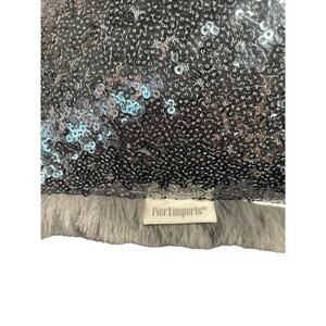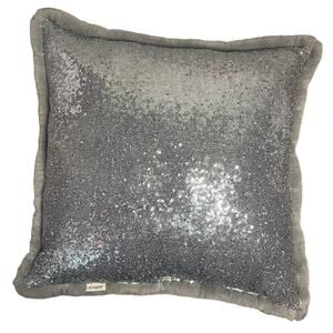 Pier 1 Imports Accent Throw Pillow Silver Sequin Gray Faux Fur 18"x18" Soft Cozy