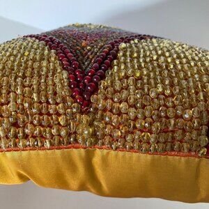 Pier 1 Imports Beaded Luxury Throw Pillow Geometric Red Gold Silver 11 x 11"